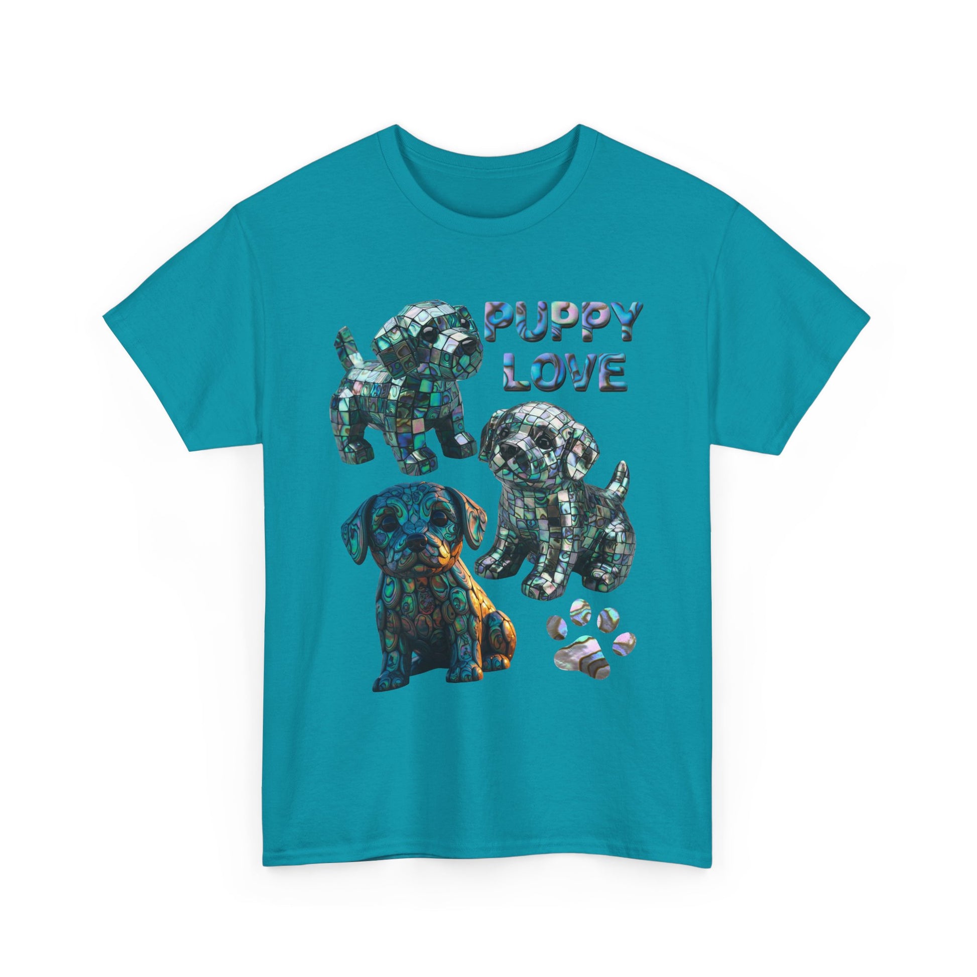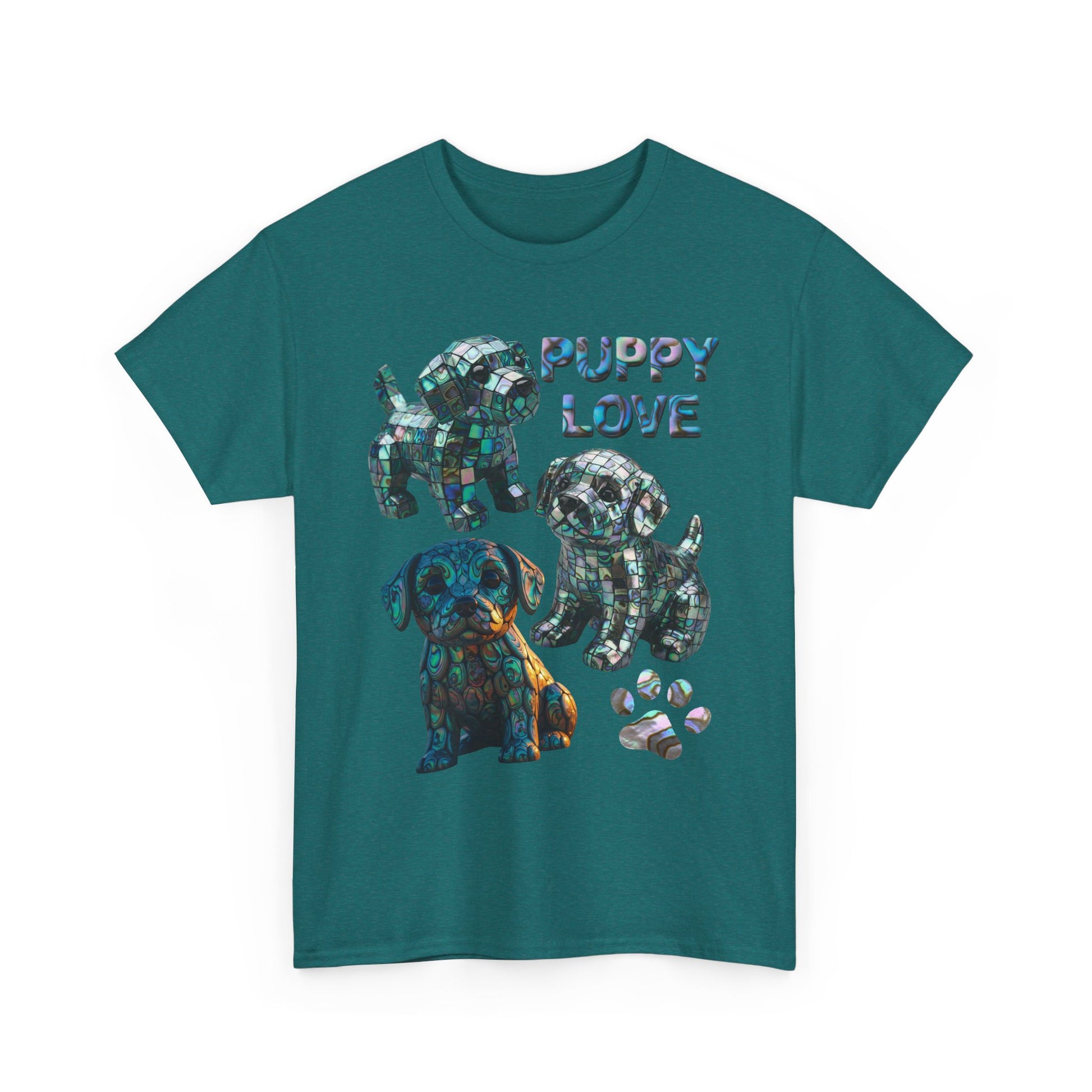 Abalone Puppy Love Tee - Unisex Heavy Cotton Tee, Dog Lovers Gift, Pet Lovers Apparel, Animal Lover Shirt, Cute Dog Graphic Tee