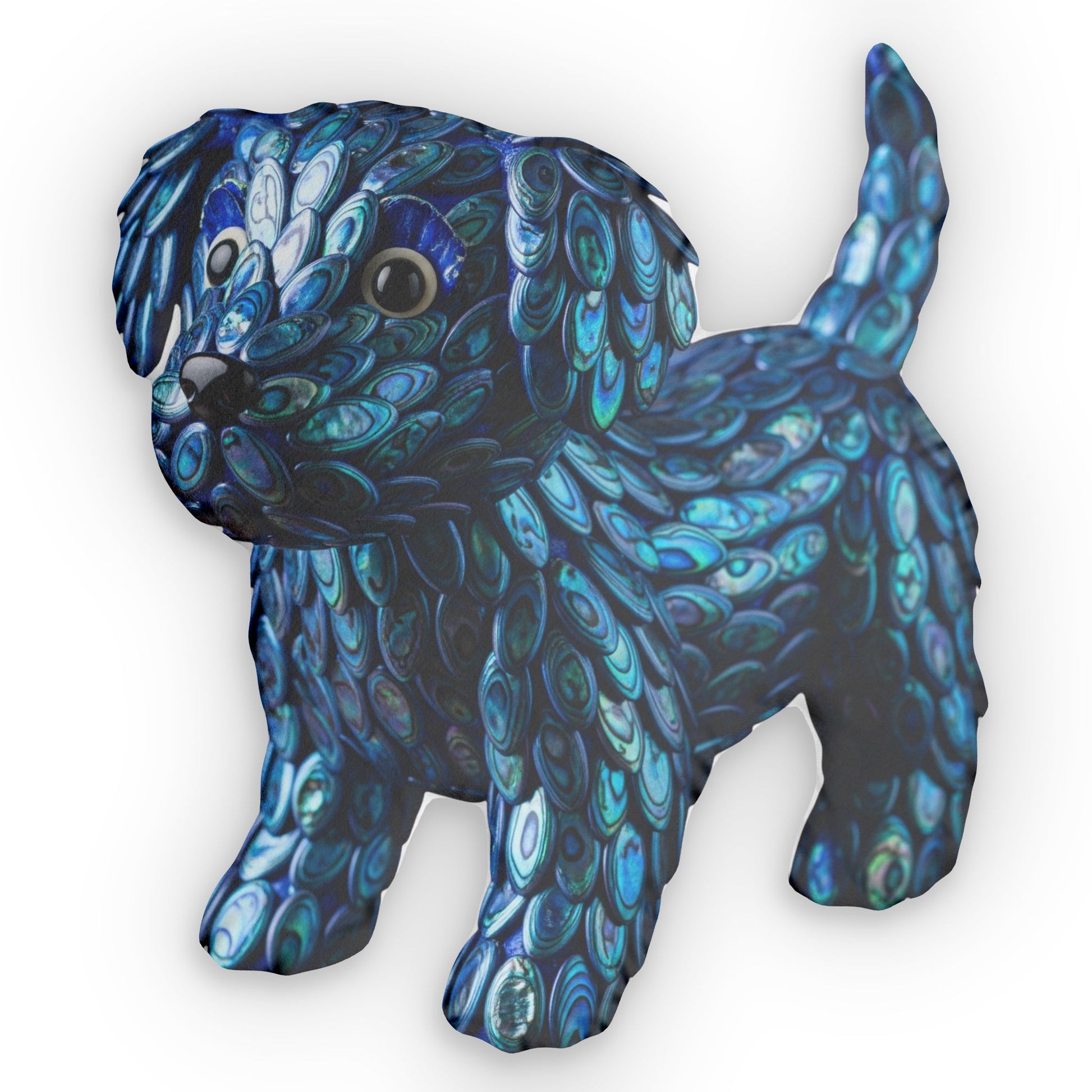 Abalone Shell Blue Puppy, Unique Pet Decor, Gorgeous Rainbow Sheen Abalone Shell Puppy for Dog Lovers, Cute Home Accent, Fun Dog Pillow