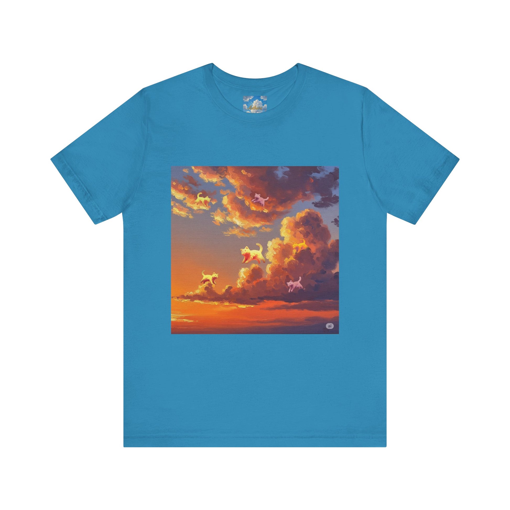 Enjoy the Aethairi in their stunning glory as the sun shines it's radiant light through the Aethairi Kitty's cloud fluff turning their once white cloud fluff shades of magnificent orange, blue, and purple! Crafted from lightweight, breathable fabric, this tee is perfect for those warm sunny days or as a comfortable layer during cooler evenings. Its vibrant colors and contemporary design make it a versatile choice for both relaxed outings and semi-formal occasions. A perfect fit for creatives, outdoor enthusiasts, or anyone who appreciates comfort and fashion. Ideal for gifting during holidays, birthday celebrations, or just to brighten someone's day!