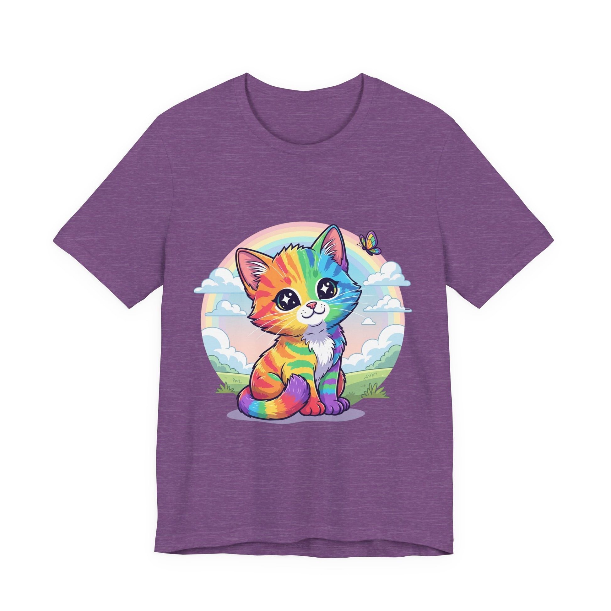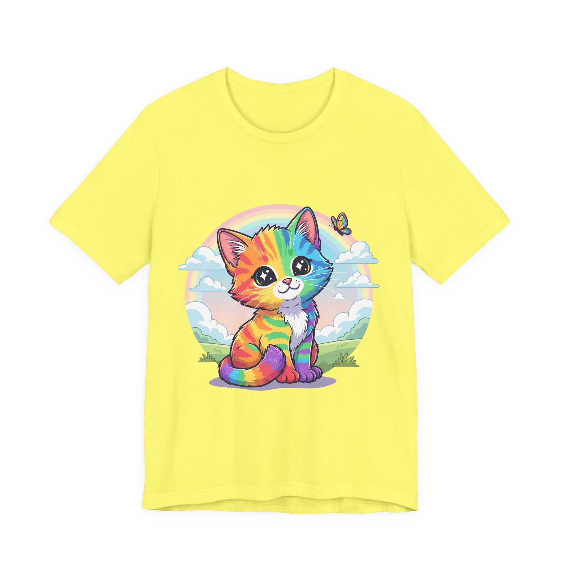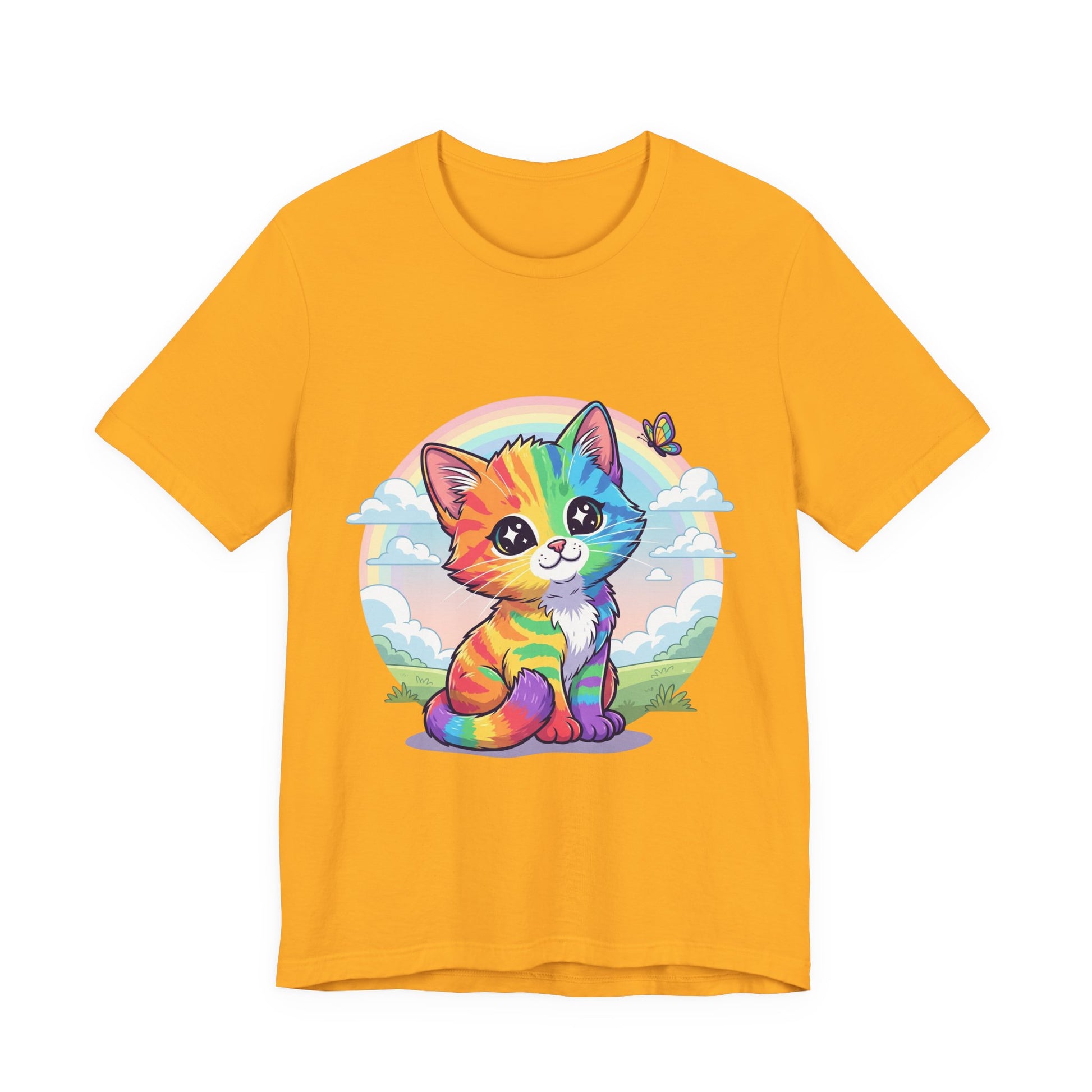 Rainbow Cat Short Sleeve Tee - Fun, Playful, Vibrant, Perfect Gift for Cat Lovers, Birthday Party, Casual Wear, Summer Style