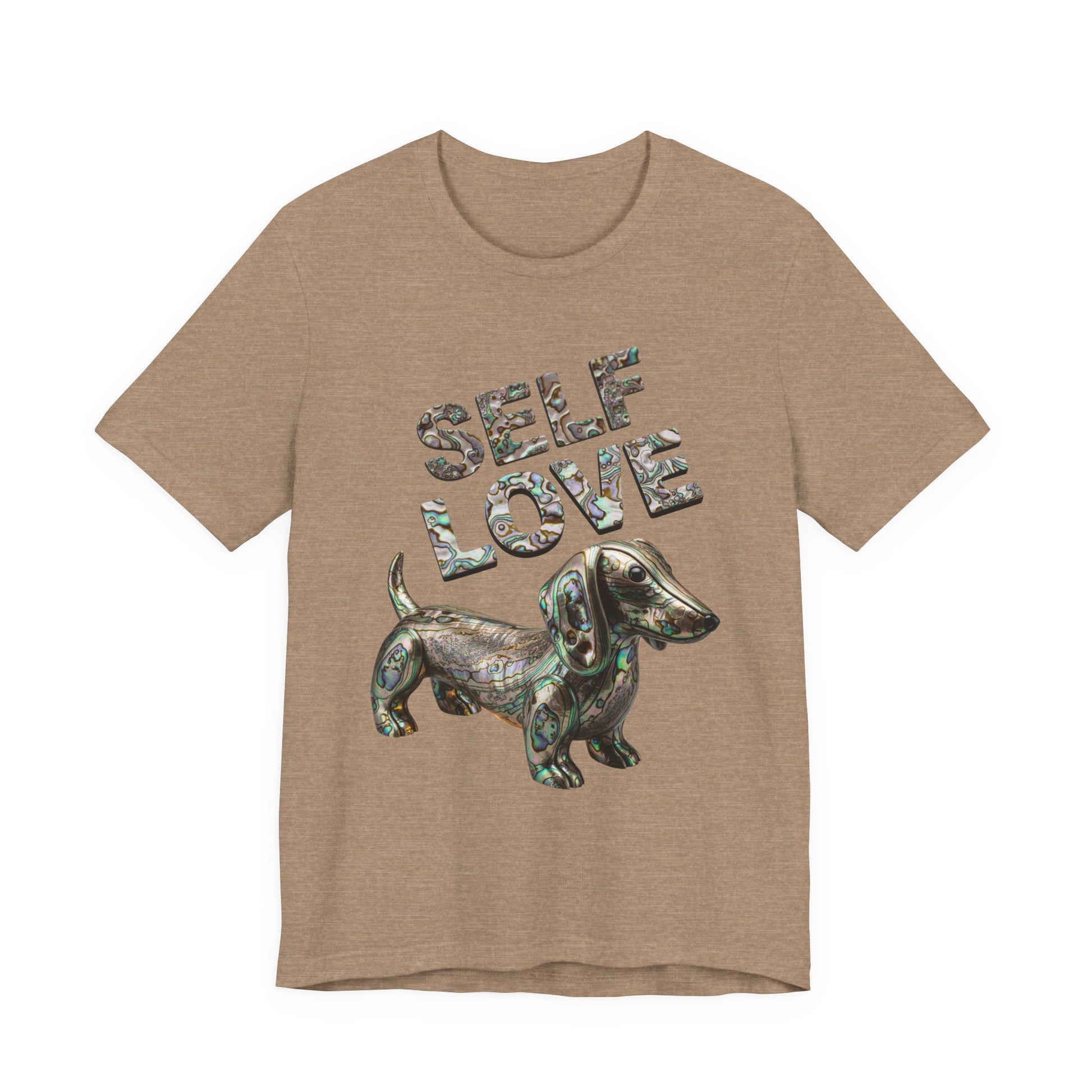 Self Love Abalone Dachshund Tee, Unisex Jersey Short Sleeve Dog Shirt, Pet Lover Gift, Self-Acceptance Outfit, Casual Wear, Positive Affirmation Tee