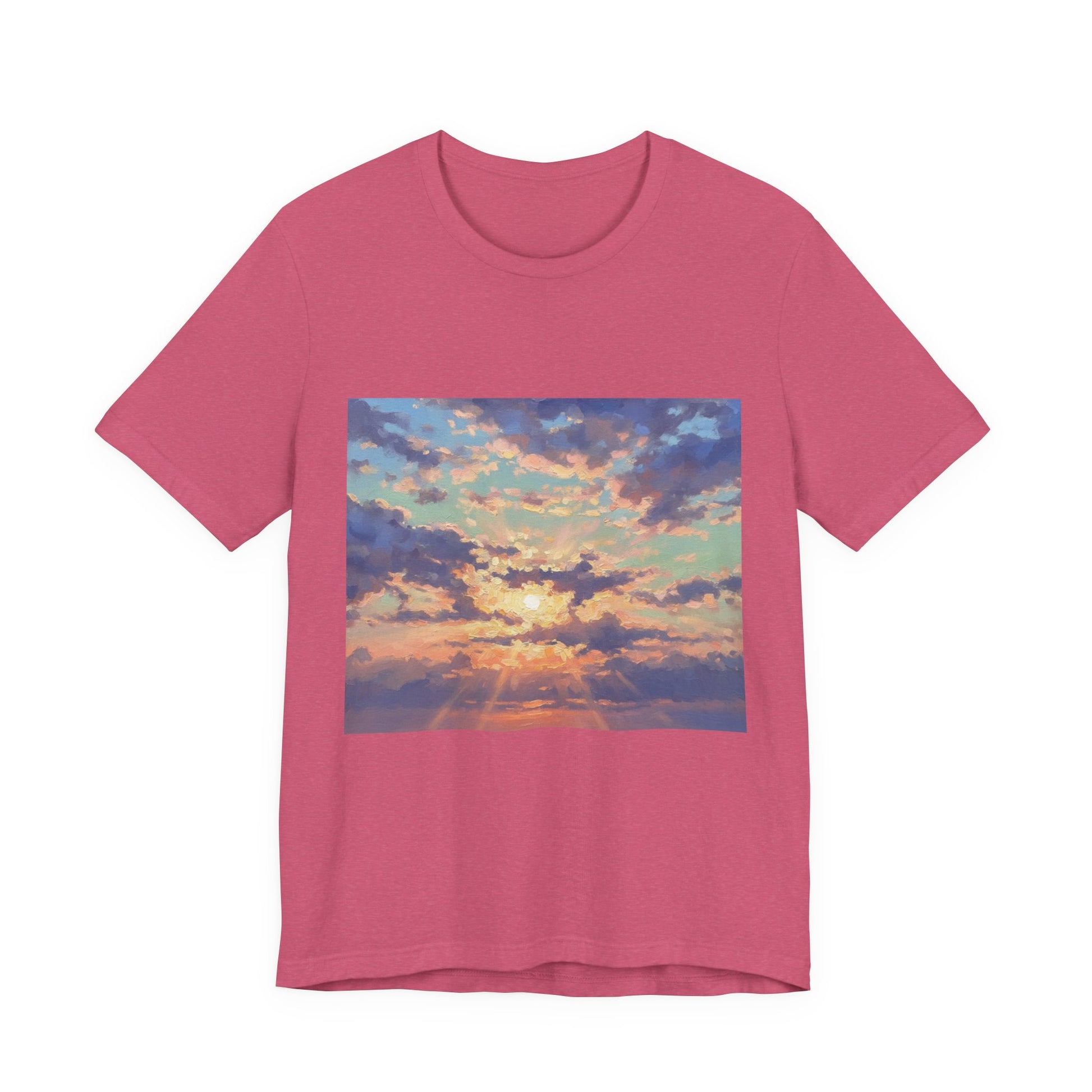 Enjoy this t-shirt of a spectacular sunrise in the clouds of Cloudtopia! Made from 100% Airlume combed and ring-spun cotton, it offers a lightweight and breathable fit, perfect for warm days or layering in cooler seasons. The relaxed design ensures comfort, making it ideal for both leisurely outings and semi-formal settings. With vibrant printing techniques showcasing stunning designs, this tee is not just a garment; it's a canvas for self-expression. Great for outdoor adventures, casual gatherings, or cozy nights in, it appeals to anyone who values comfort and style. Perfect for gifting during celebrations such as birthdays, holidays, or just because!